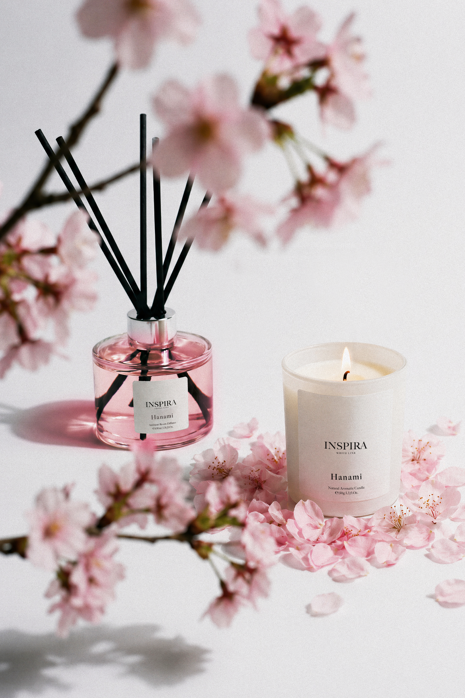 Hanami — chwila ciszy pod kwitnącymi drzewami, gdzie płatki powoli opadają na ziemię. Wiśnia otwiera kompozycję, za nią pojawiają nuty jaśminu, a ciepłe żywice i drewno tworzą miękką oprawę, niczym lekka mgła wokół ogrodowej alei. To zapach uważnej obserwacji, gdzie oddech i inspiracja łączą się, przypominając o ulotnym, a jednocześnie wiecznym pięknie natury.